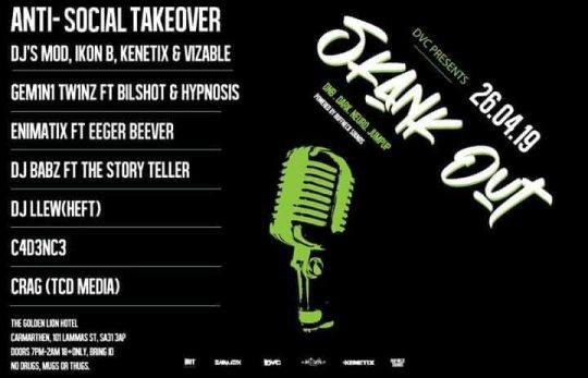 DVC Presents Skank Out 26/04/19 – Bilshot performing live with the Gemini Twinz + Many others!